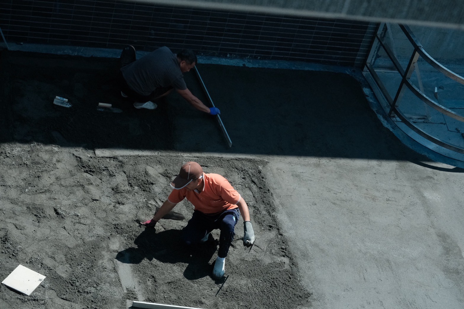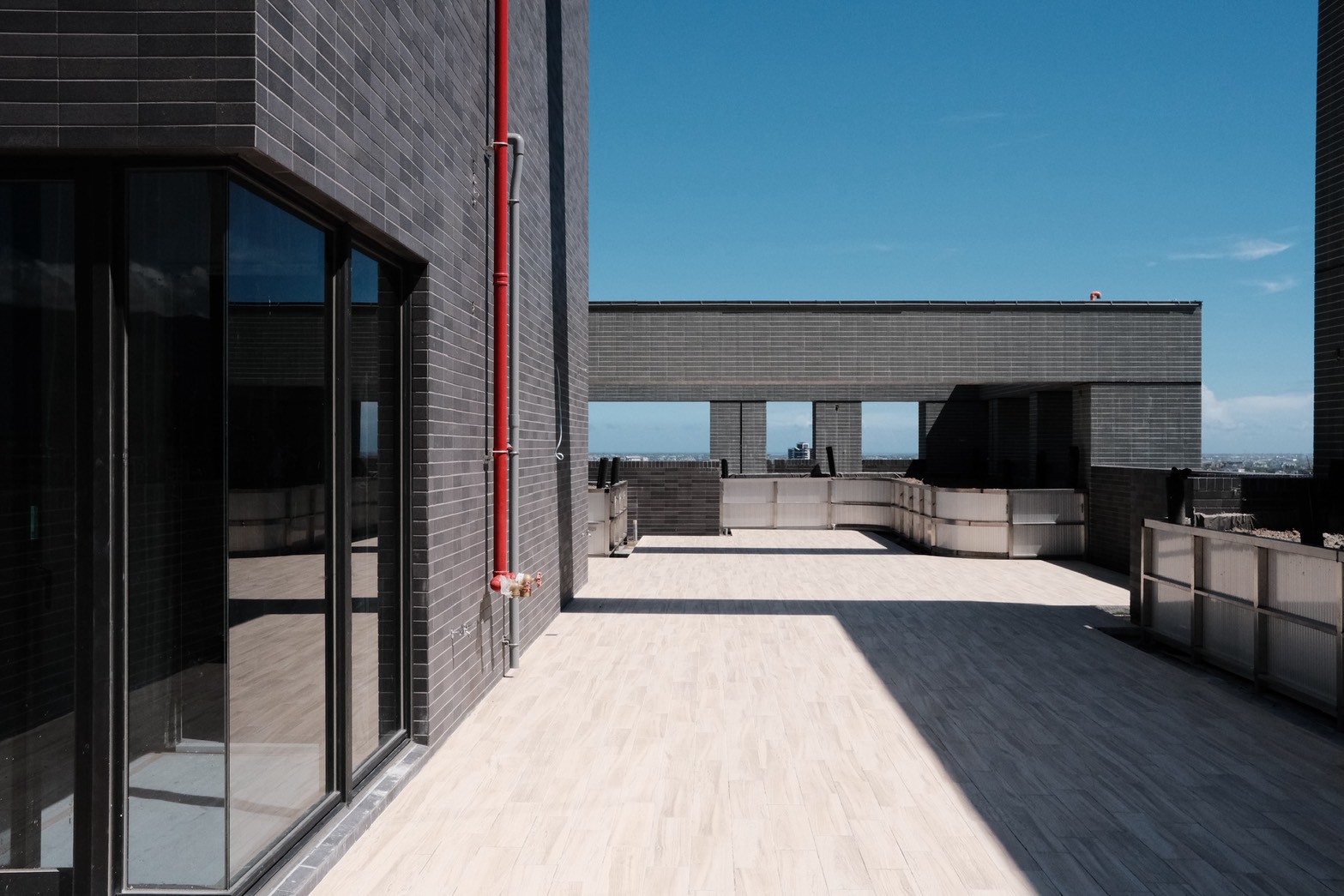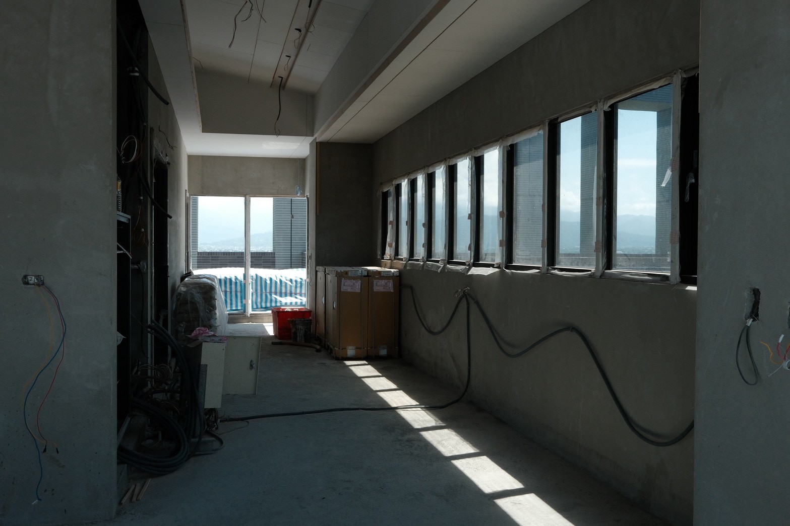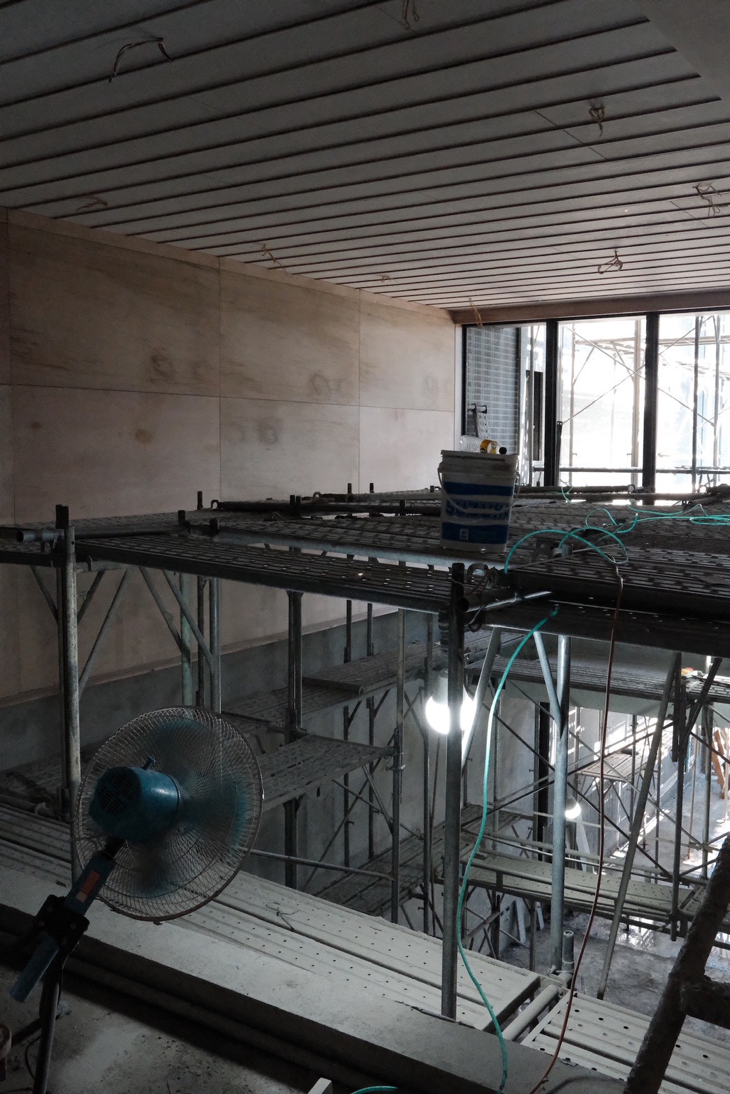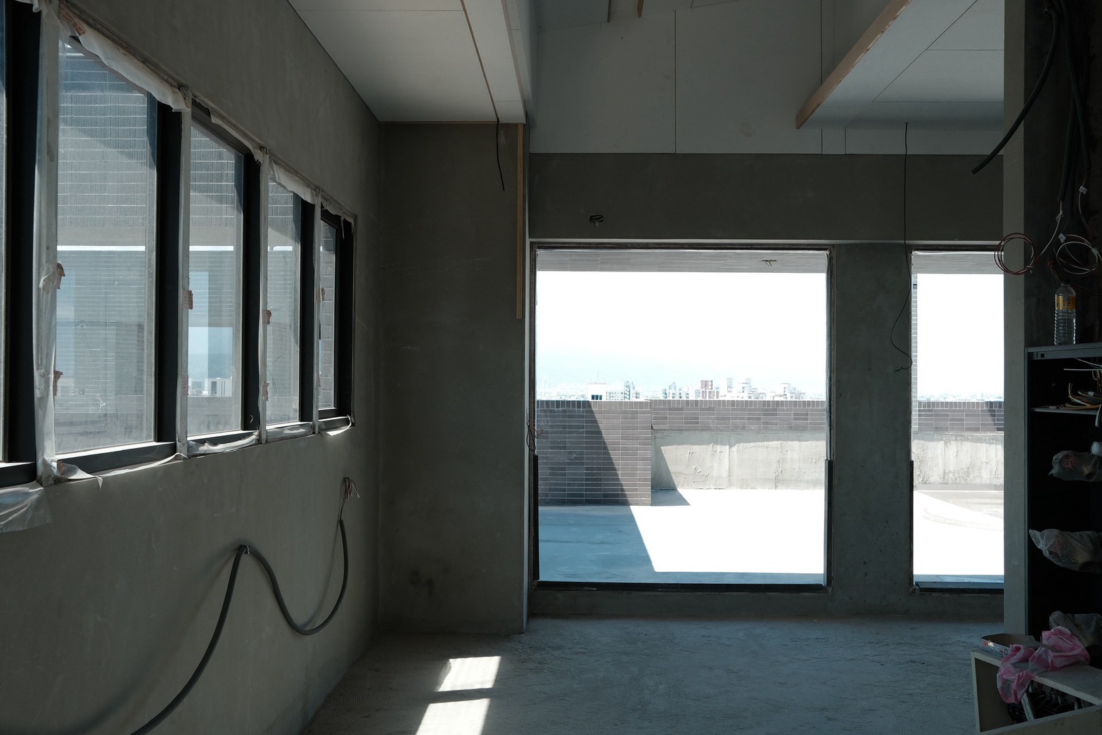 目前大喬木、小喬木正陸續進場施工,宜中路別墅區二樓陽台的羅漢松率先登場,頂樓空中花園的綠化工程也同步展開。